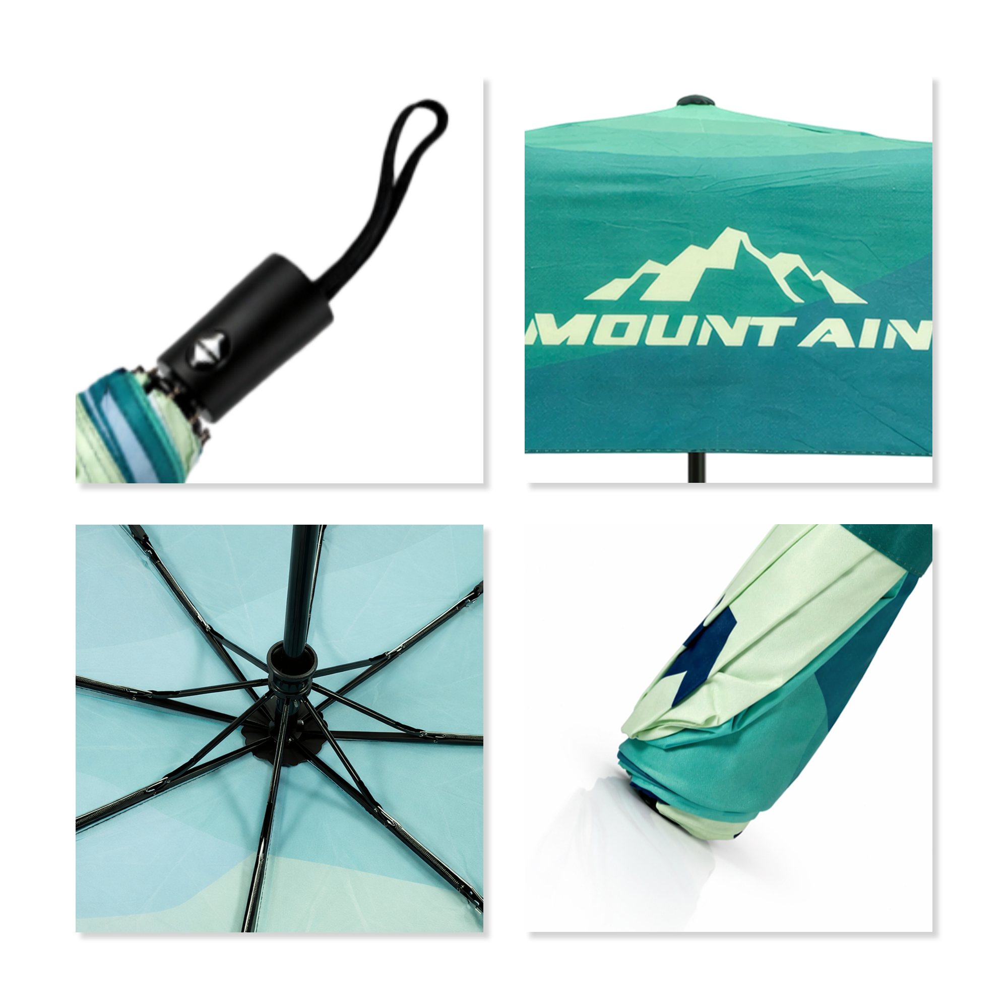 Materials: Canopy: 210T pongee canopyStretcher: fiberglassShaft: ironUmbrella cover: polyester. Print Position: Full umbrella surface and cover.