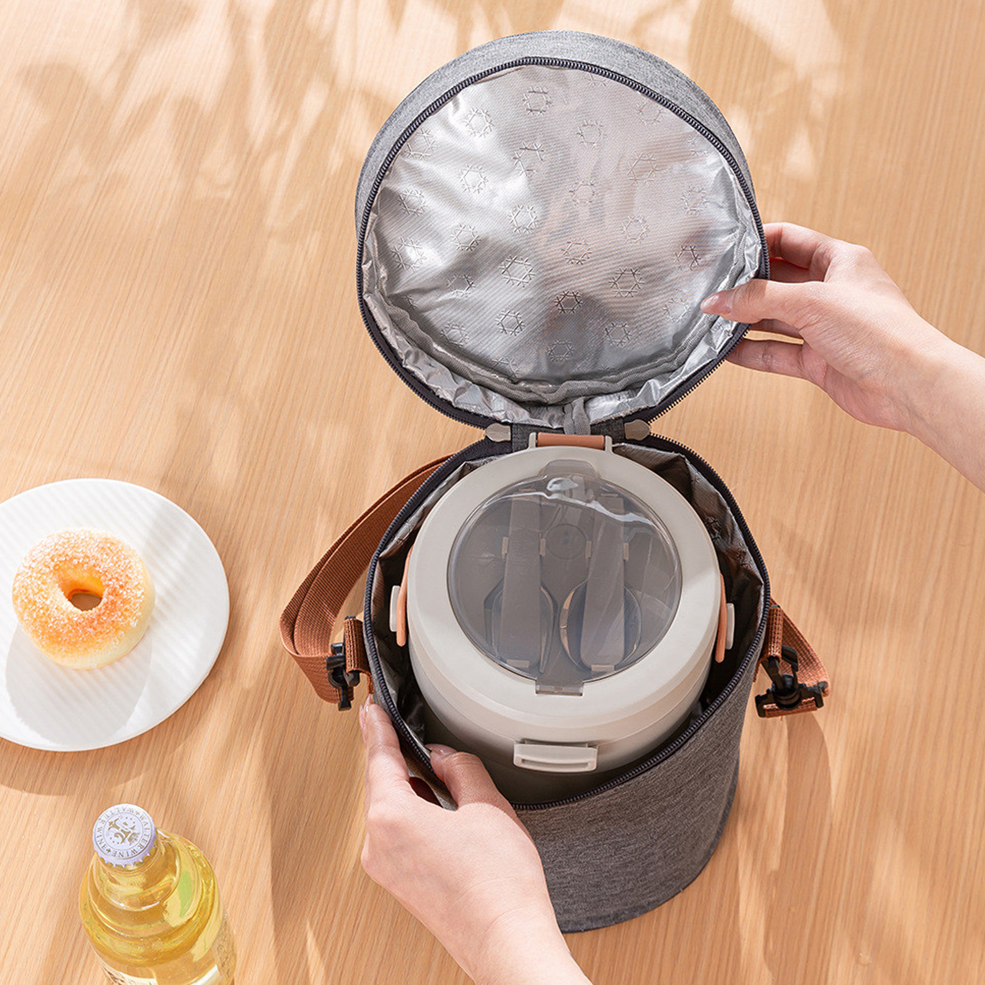 Our Cylindrical Lunch Bags are made of 300 Oxford cloth, for great durability. They are lined with aluminium foil inside, which can effectively maintain the temperature of the food. With adjustable shoulder strap and handle, they can be carried easily. With screen print or heat transfer to highlight your logo. Ideal for travel, picnics, school or office. Sizing: 18x23.5cm.