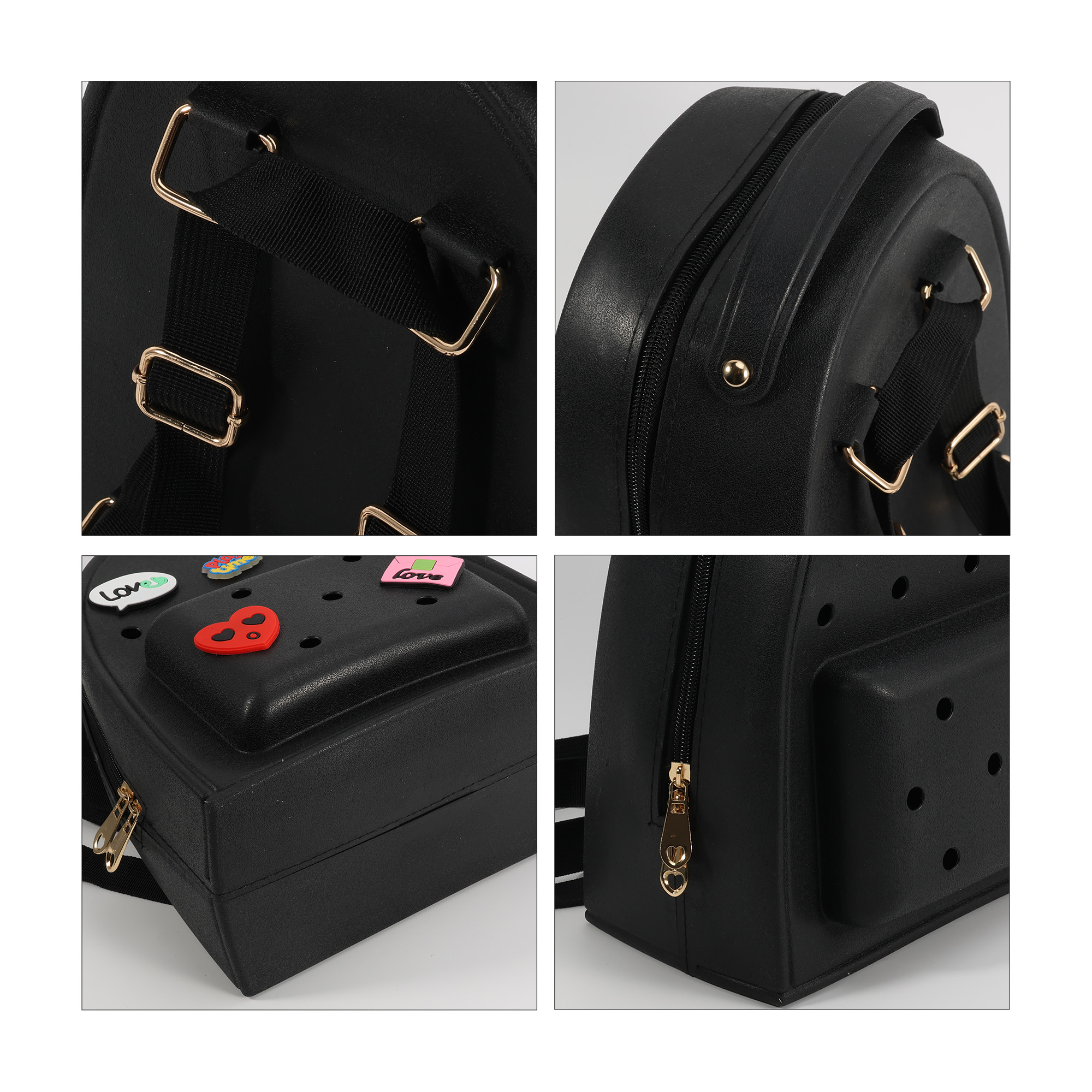 Carry your items in style with our EVA Holes Backpack, featuring an adjustable strap from 42cm to 70cm for comfortable use. Crafted from lightweight and waterproof EVA material, our bag is available in 8 colours to match your style. Personalise the bag through Screen printing or Digital UV printing to showcase your logos or brand messages. Additional customisations include custom shape charms and a custom backing card. Ideal for school use, day trips, or outdoor activities, our bag presents your brand through practical carrying solutions. Sizing: S: 19x10x22cm L: 22x12x26cm Strap Length: 42 70cm.
