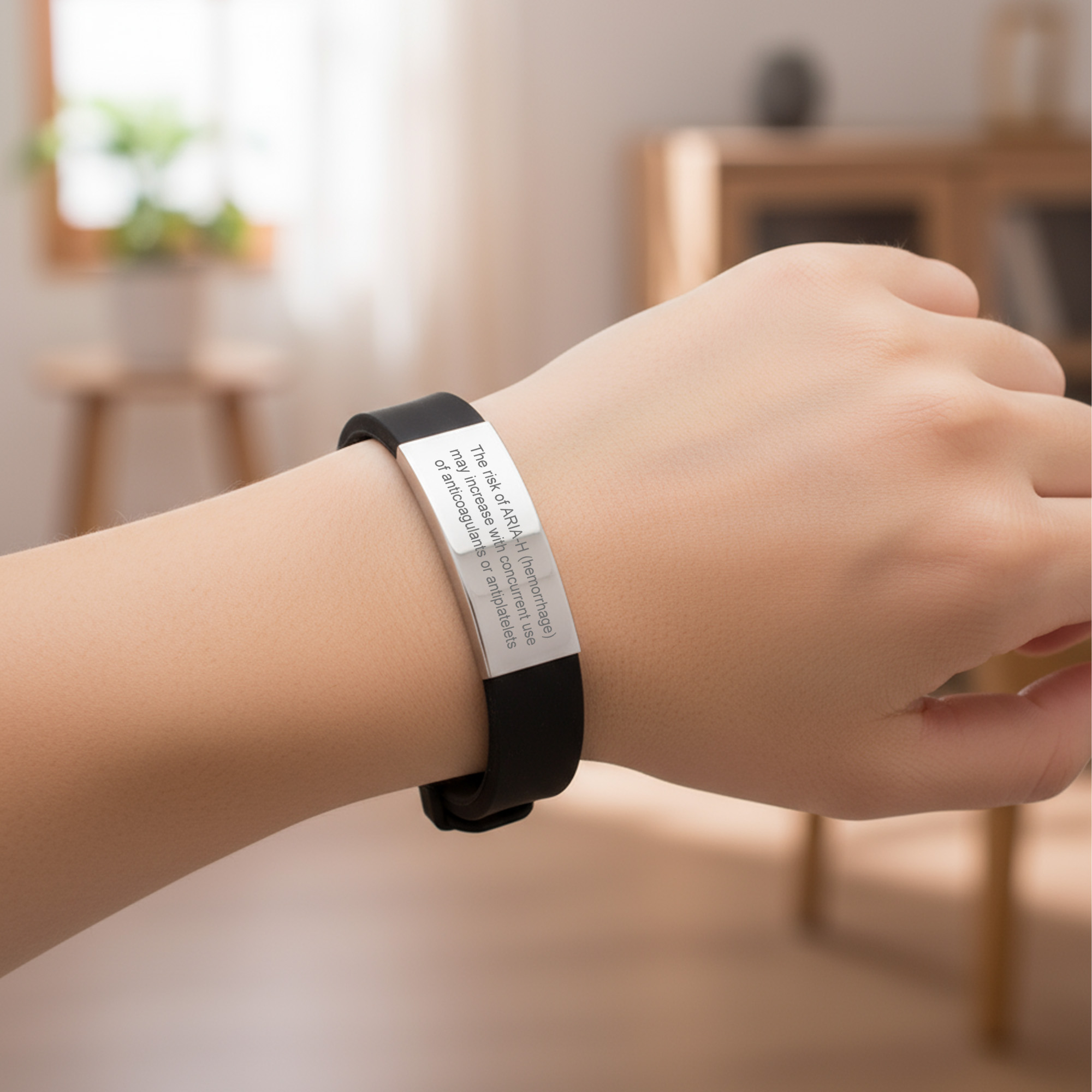 Showcase your brand with our Engraved Stainless Steel Bracelet, combining a soft silicone rubber strap with a stainless steel arc. Our bracelet is equipped with an adjustable needle buckle, ensuring a secure and comfortable fit for wrists of all sizes. Personalise the stainless steel arc, available in silver, black or gold. Showcase your brand identity through engraving that keeps your logos or brand messages permanent. Ideal for corporate events, team activities, or promotional campaigns, our bracelet offers a modern and practical way to increase brand visibility. Sizing: Silicone bracelet: L246 x W15mm Metal: L39 x W16mm.