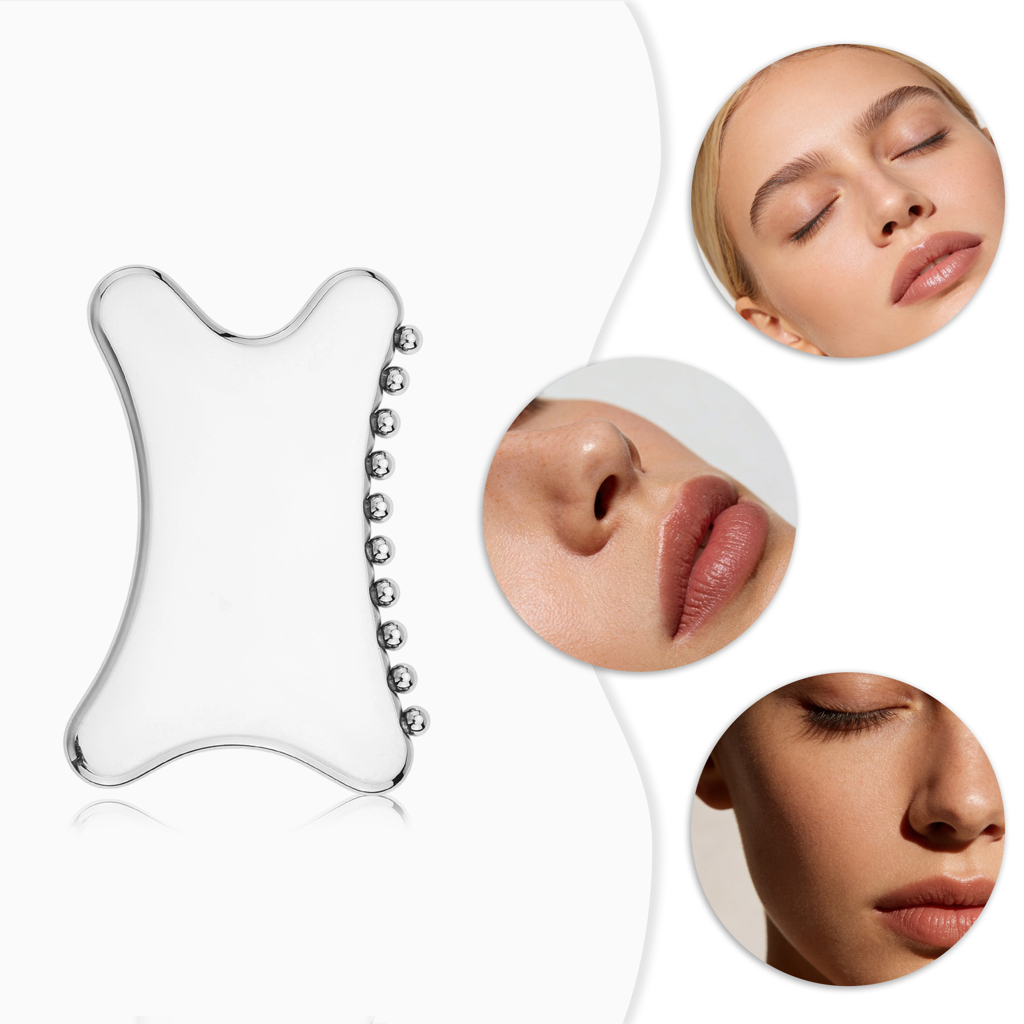 Revitalise your skin with our Gua Sha Tool! Expertly crafted from quality 420 stainless steel, this tool is designed for comfortable use. The smooth, polished surface offers a naturally cooling sensation for a soothing experience. Ideal for facial massage and promoting circulation. Personalise it with custom engraving to make it your own. Your perfect at-home companion for glowing skin and relaxing self-care moments!. Sizing: 8.92x5.9cm.