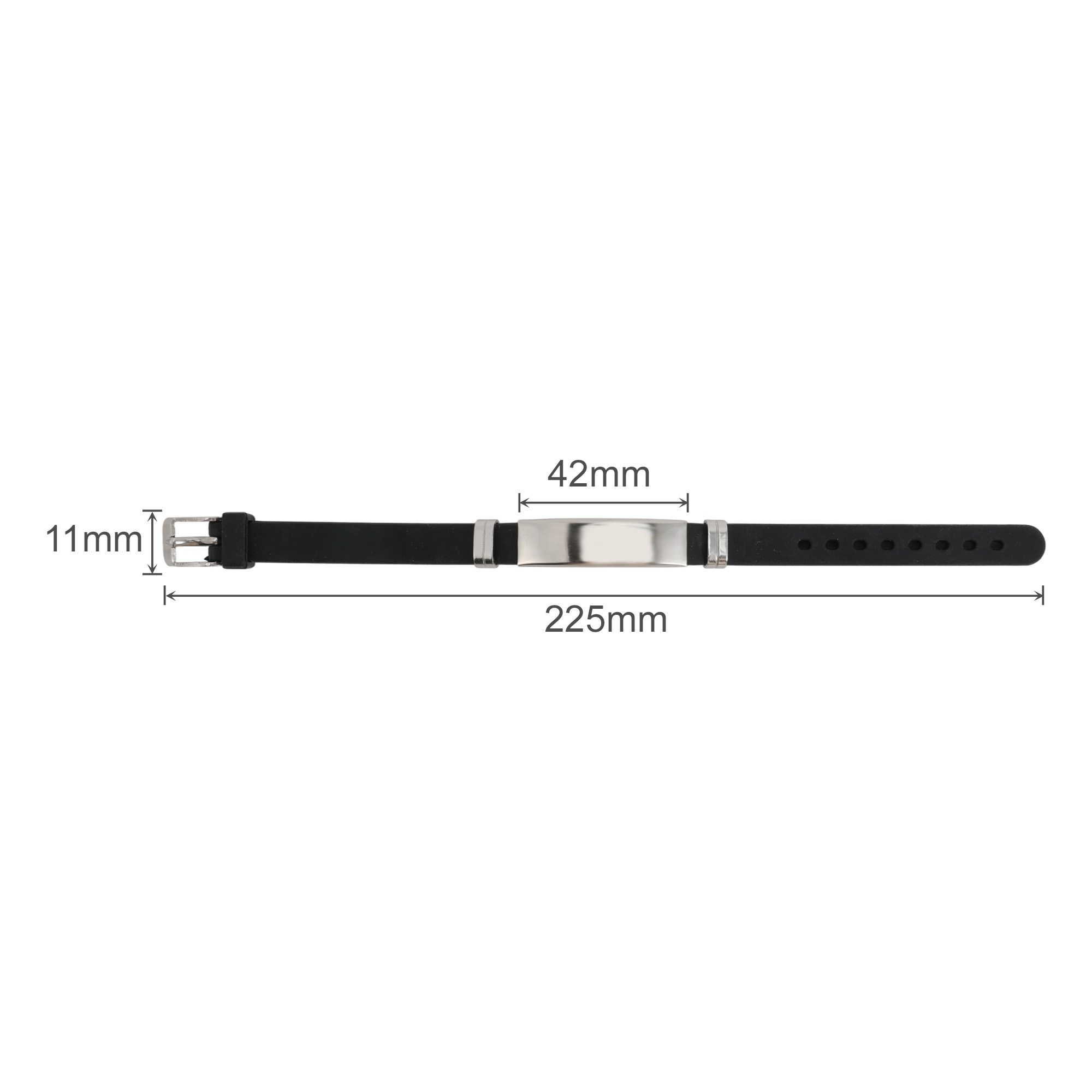 Get your branding seen with our Metal Silica Bracelet, featuring an adjustable needle buckle for easy and customised fitting. Our bracelet combines a soft black silicone strap with a polished metal arc in silver, black or gold options. Crafted from durable silicone rubber and metal materials, our bracelet ensures lasting comfort and strength. Customise your logos or brand messages through engraving to ensure lasting brand visibility. Ideal for corporate gifting, team building events, or trade shows, our bracelet presents your brand in any environment. Sizing: Silicone bracelet: L225 x W11mm Metal: L42 x W11mm.