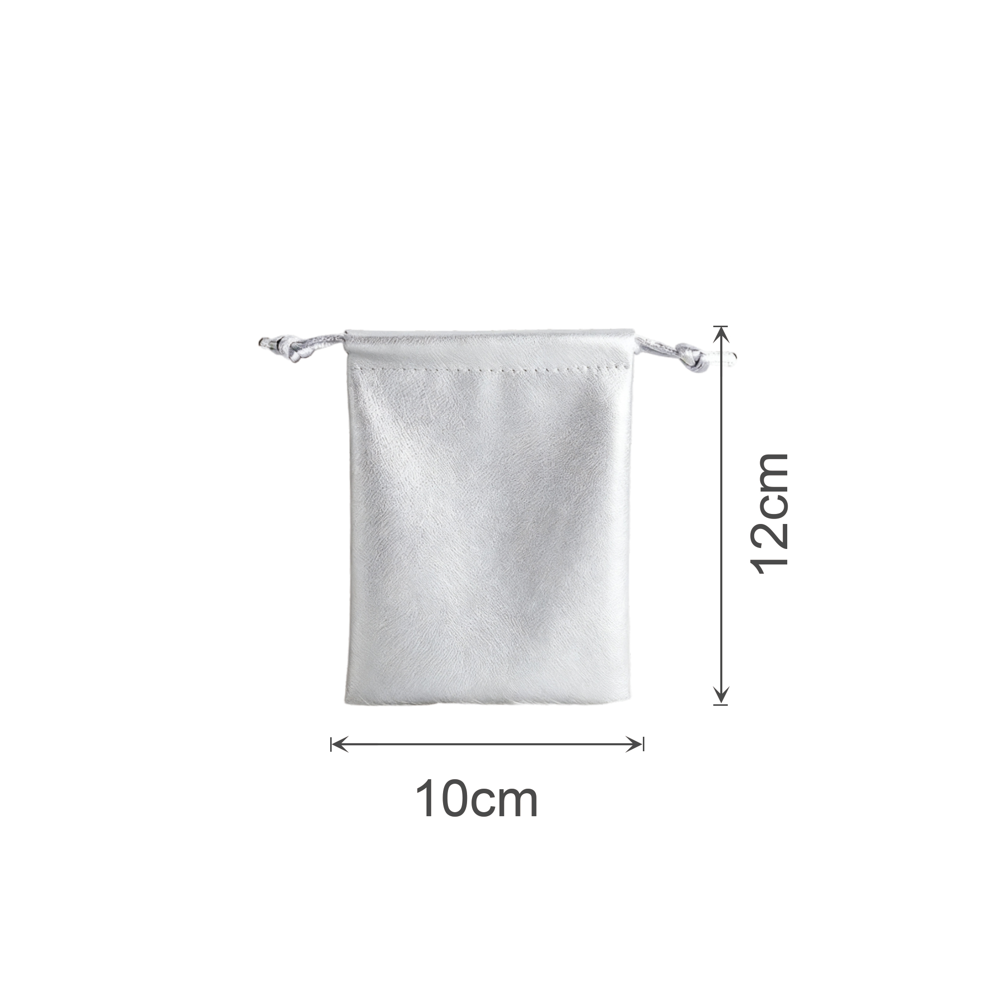 Present your products with our PU Leather Drawstring Gift Bags, crafted from premium PU leather in Black, White, Beige, Silver and Pink. Measuring 10x12cm, our bags feature a practical drawstring closure to secure contents. Customised patterns or logos through Debossing, Screen printing, or Hot foil stamping on the bag can enhance the effect of brand promotions. Perfect for jewellery packaging, corporate gifts, or luxury retail. Sizing: L10 x W12cm.
