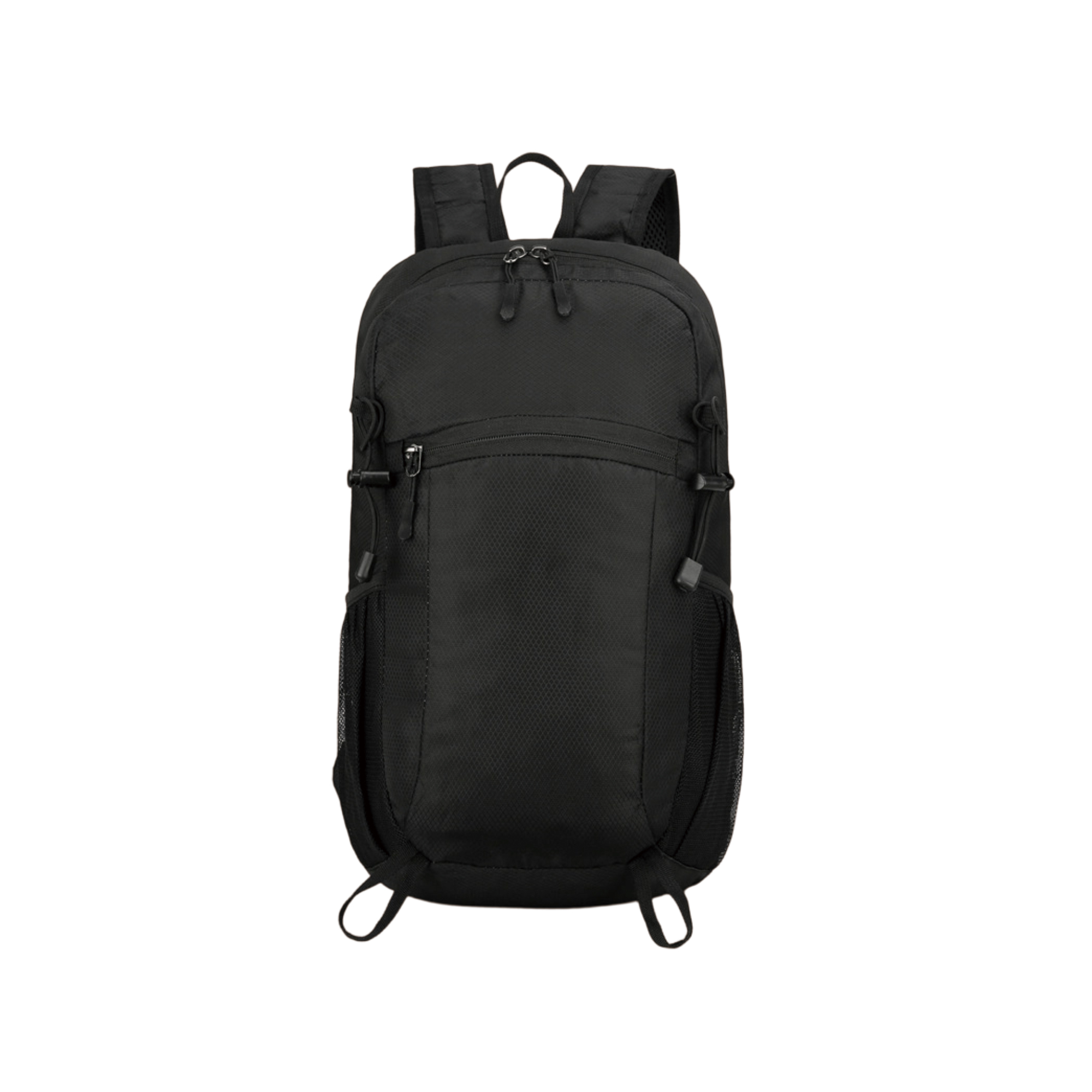 This Packable Hiking Backpack is the perfect travel companion which can be conveniently folded up into a zipper bag when not in use, featuring a front zipper pocket for essentials, 2 side pockets for bottles, 2 elastic adjustable straps for climbing sticks fastening and a main pocket. Our quality backpack is made of Nylon, that is lightweight and durable. With full colour heat transfer to showcase your design, you can choose from 6 colours. Sizing: 22.5cm w 41cm h 14cm d Folded: 20.5cm w 18cm h 5cm d.