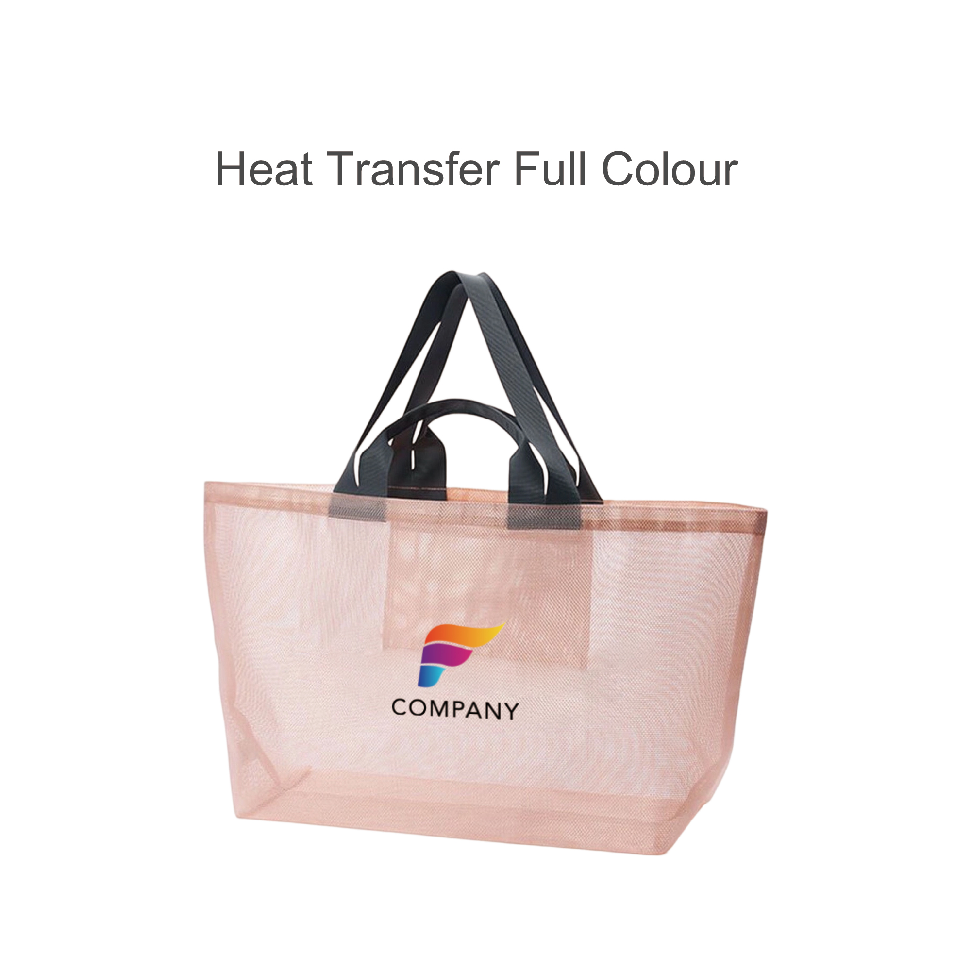 Meet your new go-to bag for every adventure! Our Premium Large Mesh Beach Tote Bag is crafted from durable polyester, ready for the beach, pool, or market. It boasts a surprisingly large capacity in a minimalist style, yet folds compactly into a small package, when not in use. The best part? Customize it with heat transfer printing on the front or back sides, perfect for making a statement with your logo or design. Style, space, and convenience all in one!. Sizing: 42x30x13cm Short handle length: 40cm Long handle length: 62cm.