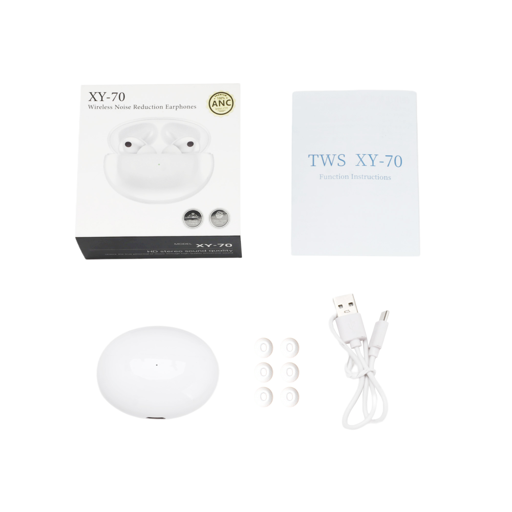 Introducing our Active Noise Cancelling Wireless Earbuds, they provide active noise Cancelling functionality, which can effectively isolate the external sounds. Designed for those who demand both quality and style. Crafted from durable ABS and PC materials, these earbuds offer about 8 hours of uninterrupted listening. With pad print or UV print to highlight your logo. Each set comes with a packaging box, user manual, and charging cable. Available in white or silver colour, these earbuds blend function with modern aesthetics. Elevate your audio experience today!. Sizing: 6.1x4.8x2.7cm.
