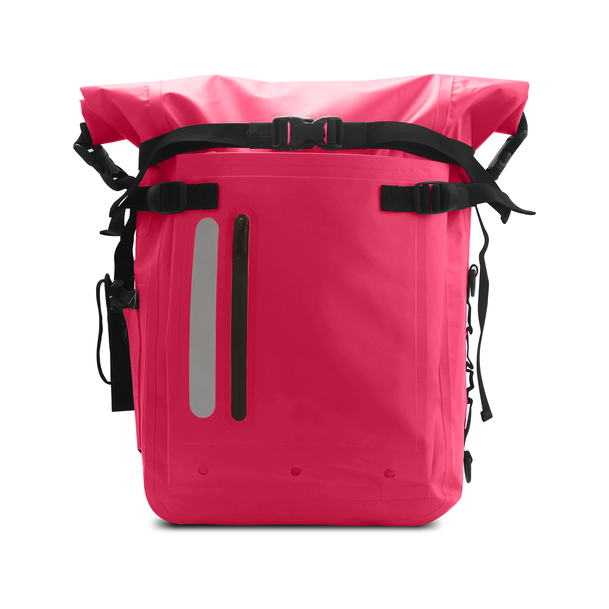 This Waterproof Roll Top Backpack can conveniently adjust its capacity, featuring a front zipper pocket for essentials, a front pocket for diving fins, 2 adjustable side pockets for bottles and a main pocket. Our quality backpack is made of PVC, that is waterproof and durable, making it a wonderful diving companion. With screen print to showcase your design, you can choose from 2 colours, black and yellow. Sizing: Roll-top:30cm w 44cm h 15cm d Expanded: 30cm w 69cm h 15cm d.